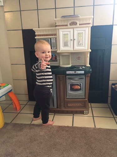 2) He has started this thing where he will stick his pointer finger out at someone, blink one eye and stick his tongue out, and wait until they touch their pointer finger to his. I know he’s had a good nap when he’s pointing and winking from his crib.