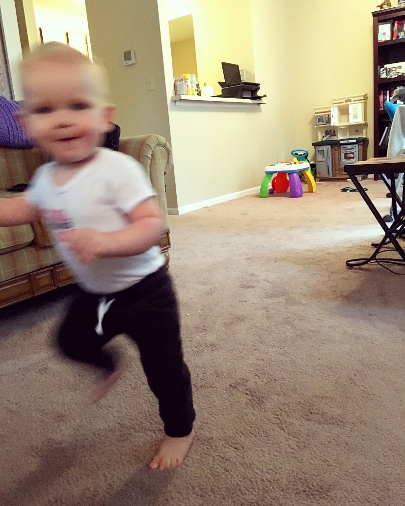 Spenny has been officially walking for 3 weeks now, and is constantly on the go. He runs circles around our apartment, dragging his toys, laundry, and anything else he can get his mitts on. He’s a busy boy. But he hits his breaking point after a few hours, and usually throws himself onto the floor sobbing and screaming (his way of saying “I need a nap now.”) He wants to keep playing, but he knows he needs to rest first. He isn’t wired to run around all day and night without taking a break.