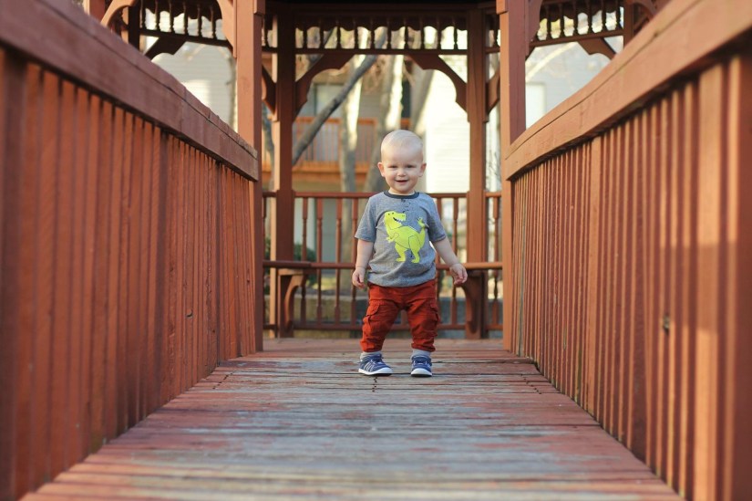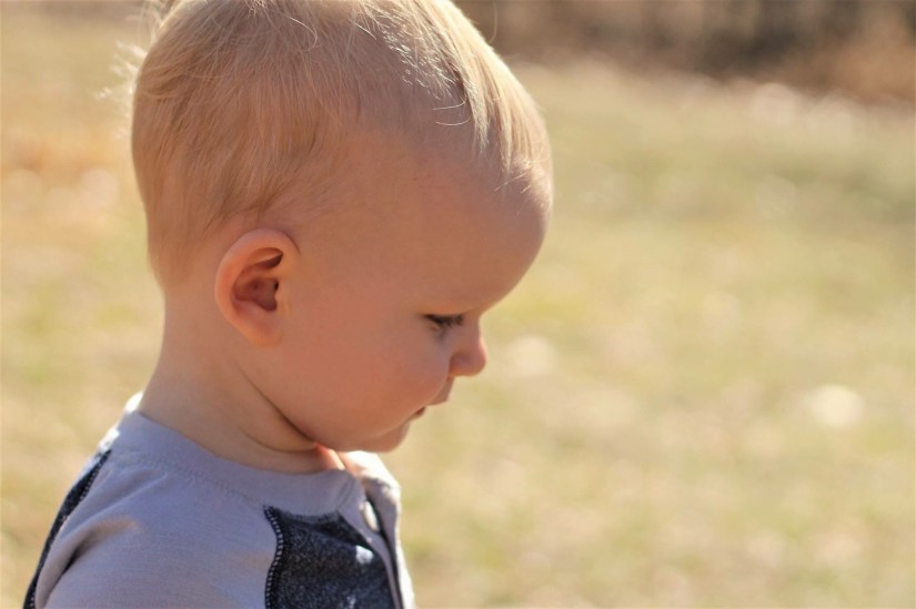 The little explorer. He loves just walking around and looking at things. Everything excites him. He could play with a kitchen spoon for hours, literally, just carrying it around. He is overjoyed when he is outside wandering.