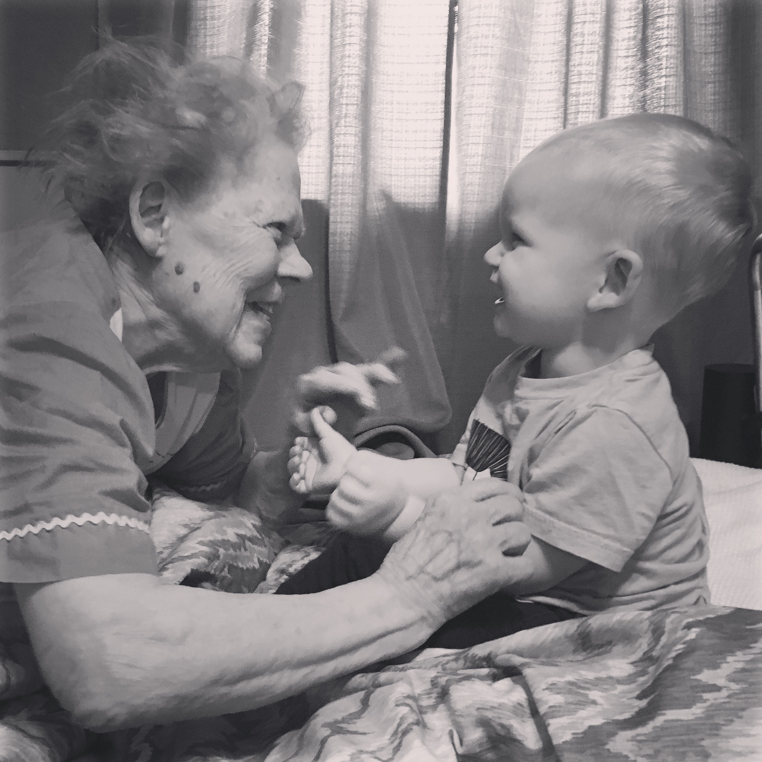 She never remembers my baby’s name. (Or my husband’s name.) She doesn’t know his birthday, or really anything about him. I’m sure she’s in bed tonight and doesn’t even remember that we were there today. But he knows her, and she knows him. You can see it in both their eyes. There’s instant and unconditional love there.
