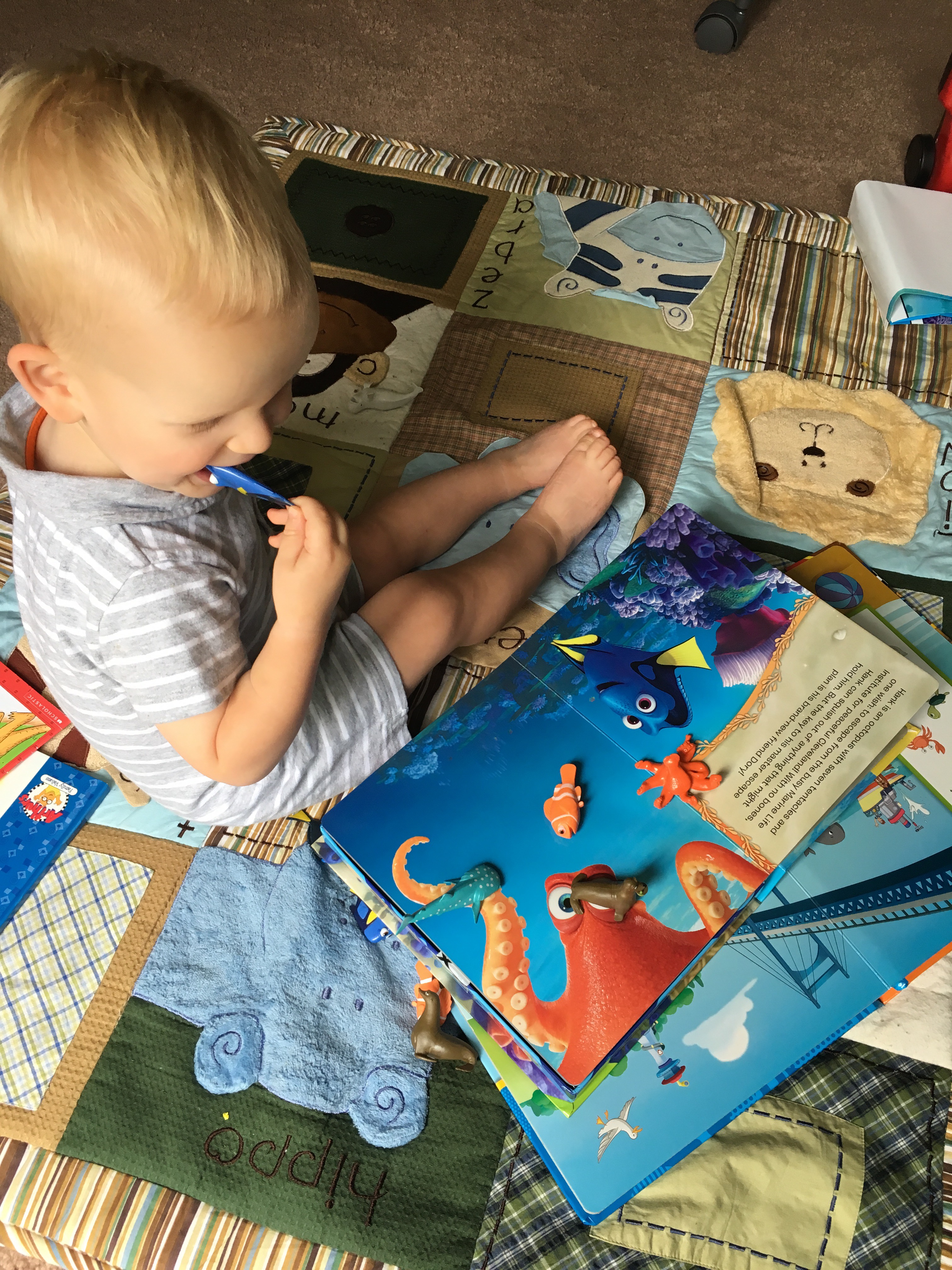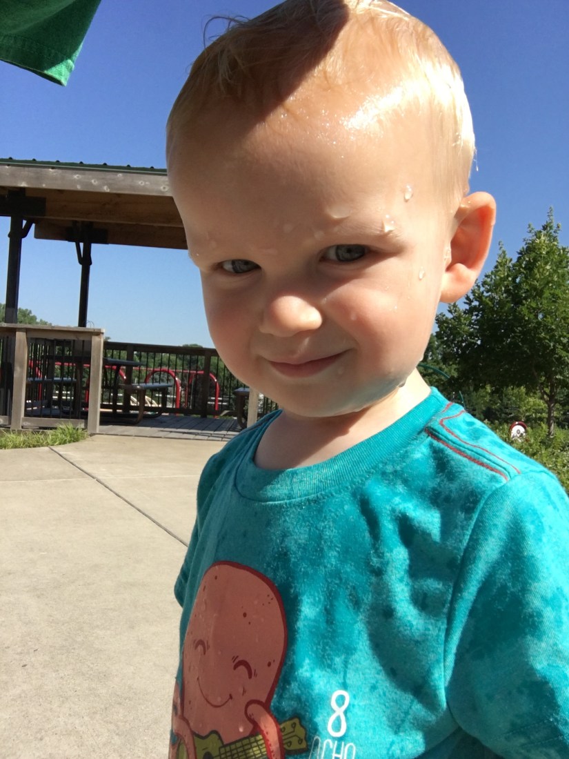 After he eats breakfast, I spend some time picking up food off the carpet and cleaning up his high chair. Spencer loves to toss his food off the tray. Most of the time I’ll take him out to the park or out for a walk before it gets too hot. If it’s raining, we just play inside. He’s not a child who will sit and watch TV, which is great, but also exhausting. He wants to play or read books or wrestle with us all day long. He has more energy than I can even dream of. Typically we have another diaper change after breakfast. He usually starts getting crabby mid-morning and on a good day, will go down for a nap with little resistance. On a not good day, he wanders around crying, yelling, and refusing to be consoled until he finally wears himself out enough for me to put him to sleep.