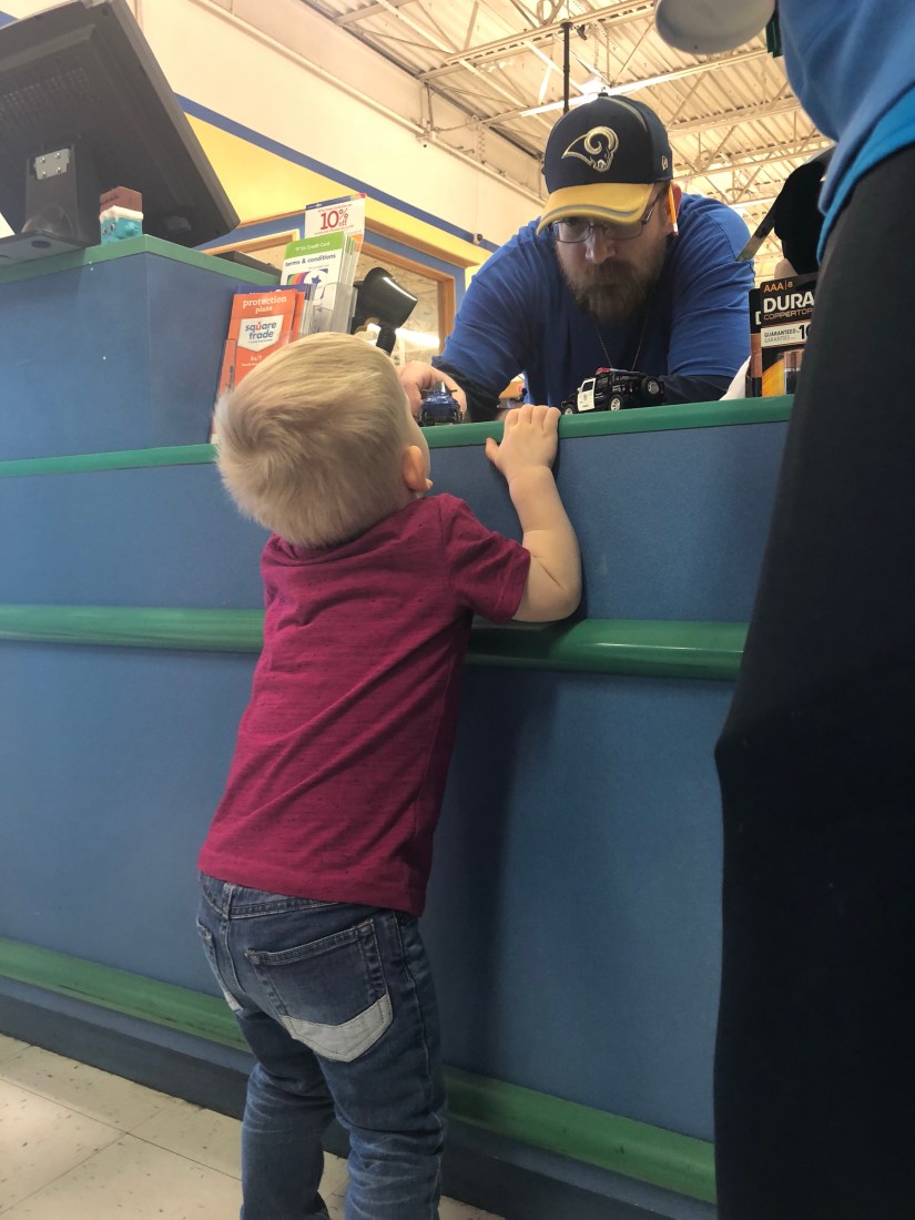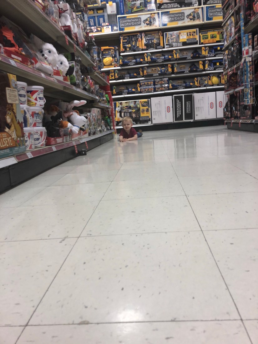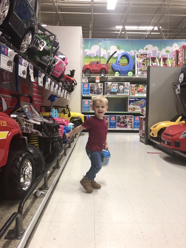 Jordan saw on the news that Toys R Us might be closing all of their stores in the next few weeks and decided we needed to take Spencer there while we still have a chance. Spencer calls it “Lots of Toys” and can’t talk about it without referring to the time he got sick there on his birthday (“I puke at Lots of Toys!”) When we pulled up in the car today, he cheerfully declared “no I’m not feeling sick!”