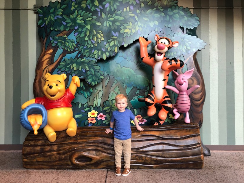We landed in Orlando around lunchtime and took a shuttle to our hotel – one of the Disney All-Star resorts. The whole way there, Spencer was staring out the window and yelling about things that excited him… like DIRT MOMMY! and A LAWNMOWER!! I was reminiscing on the shuttle ride about how much I always loved Disney World as a kid and how I felt so blessed to be able to share the experience now with my own child and my husband.