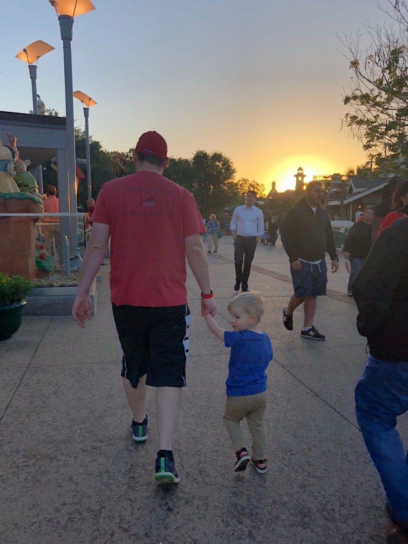 We changed clothes and got settled in our room then got on a bus to Disney Springs… Spencer was fighting a nap up to that point but immediately fell asleep on the bus. Fortunately we were able to transfer him to the stroller when we got there and he napped for another hour or so while we walked around.