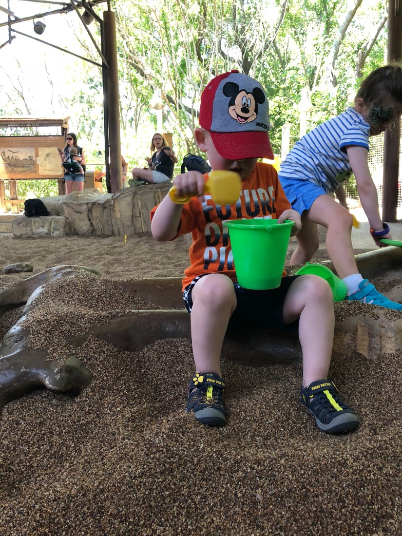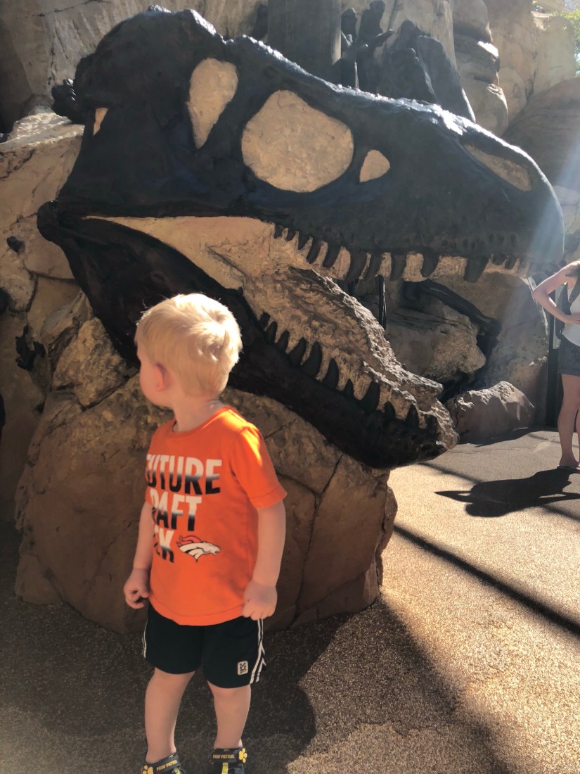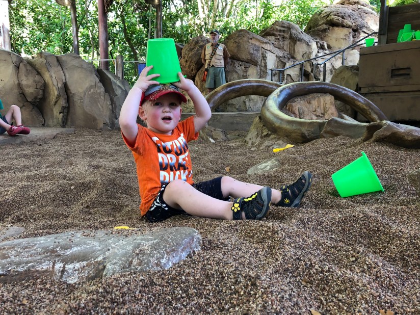 On Wednesday, we headed to Animal Kingdom and went straight for the safari ride. Spencer wasn’t fully awake and was still in grumpy mode, but Jordan and I loved it. Then Jordan went to ride Expedition Everest while I walked Spencer around some of the trails. We ended up in DinoLand and spent a looong time there just playing.