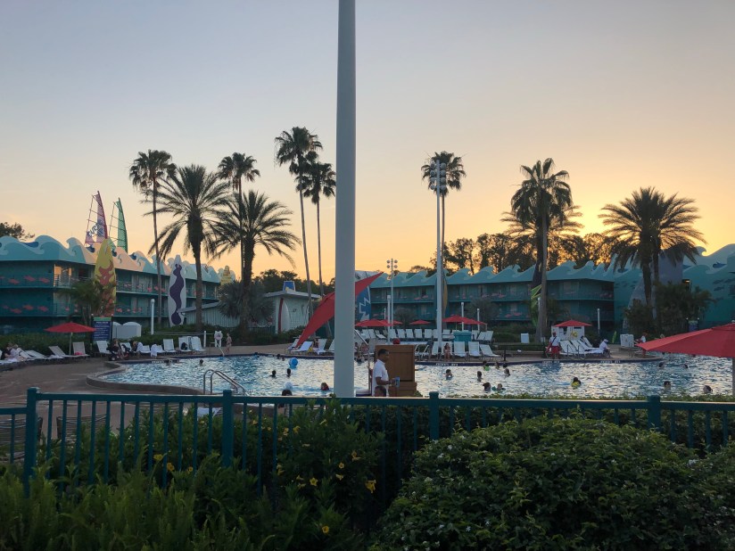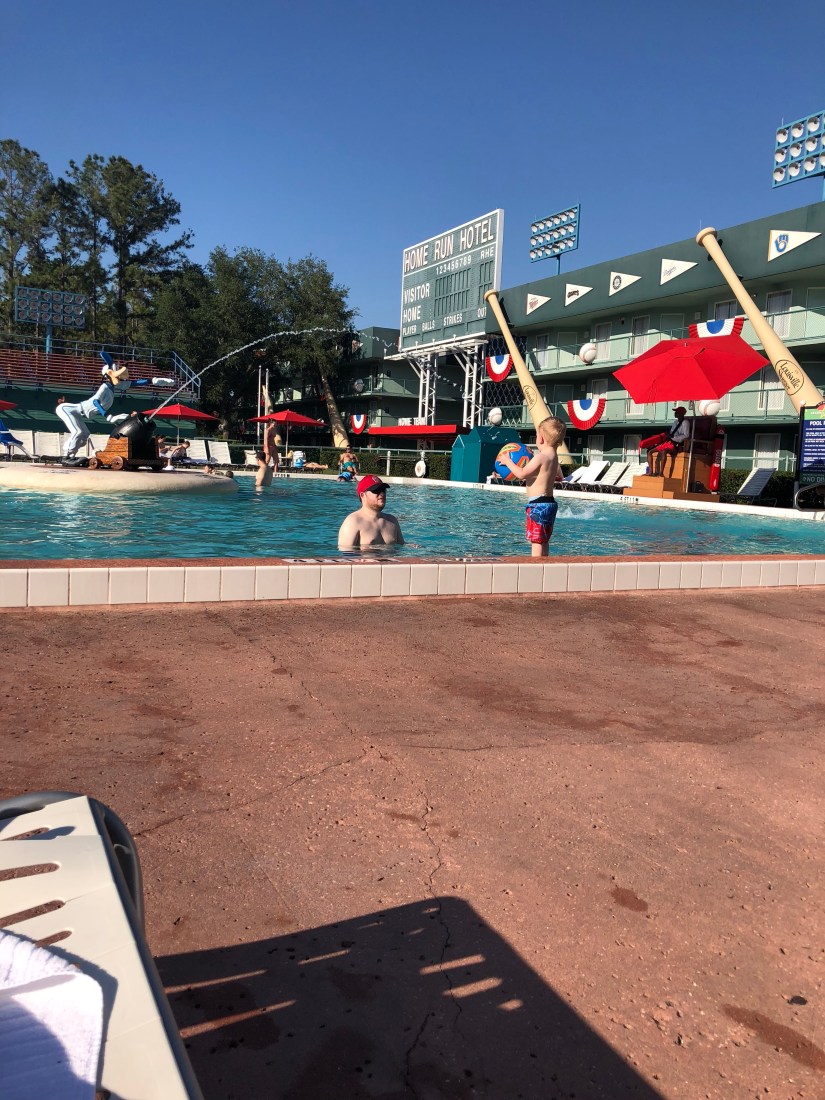 While we were playing, birds ate Spencer’s snacks and pooped on his stroller tray. 🤣😳 One thing is for sure at Disney – the birds are opportunists and not afraid of humans whatsoever. After thoroughly cleaning the stroller, we grabbed lunch at what I think was Restaurantasaurus – don’t quote me on that. Spencer was about done for the day but Jordan still wanted to look around, so we pushed him around in the stroller for awhile and he eventually fell asleep. We ended up leaving after about an hour because it was starting to get really crowded and very hot out. Spencer managed to sleep for the ride back and then all afternoon in our room.