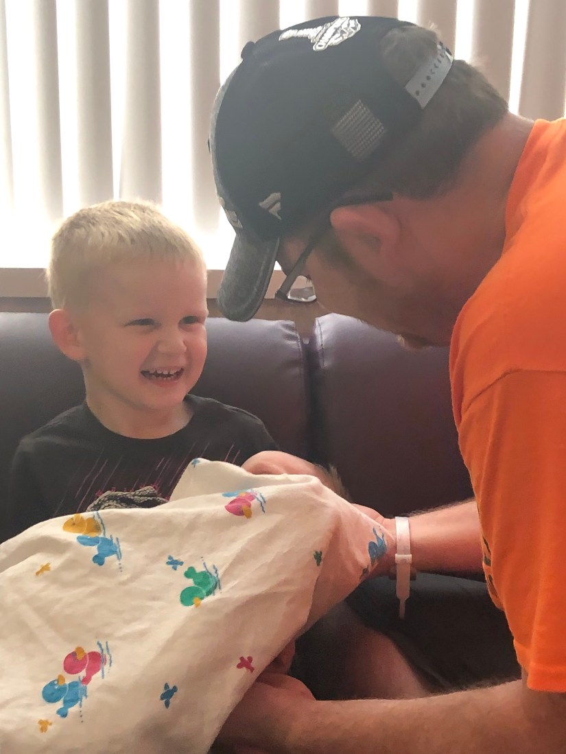 We knew the spinal would be a challenge because I have rods up and down my spine and I can’t bend the way they need for inserting the needle. Unfortunately, this took 4 attempts before they got it to work and that HURT. I’m thankful for the nurse who just hugged me while I cried and tried to hold still.
